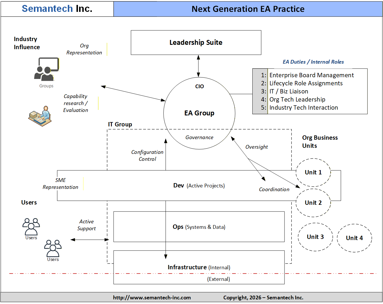 At Semantech Inc., we help organizations redefine / transform existing IT Architecture practices and deploy new ones. What exactly is an EA Practice; moreover, and what is an IT Practice for that matter?